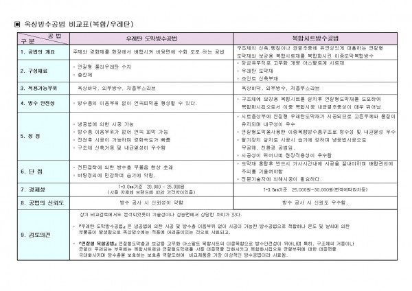 우레탄방수 및 복합시트방수 공법비교자료